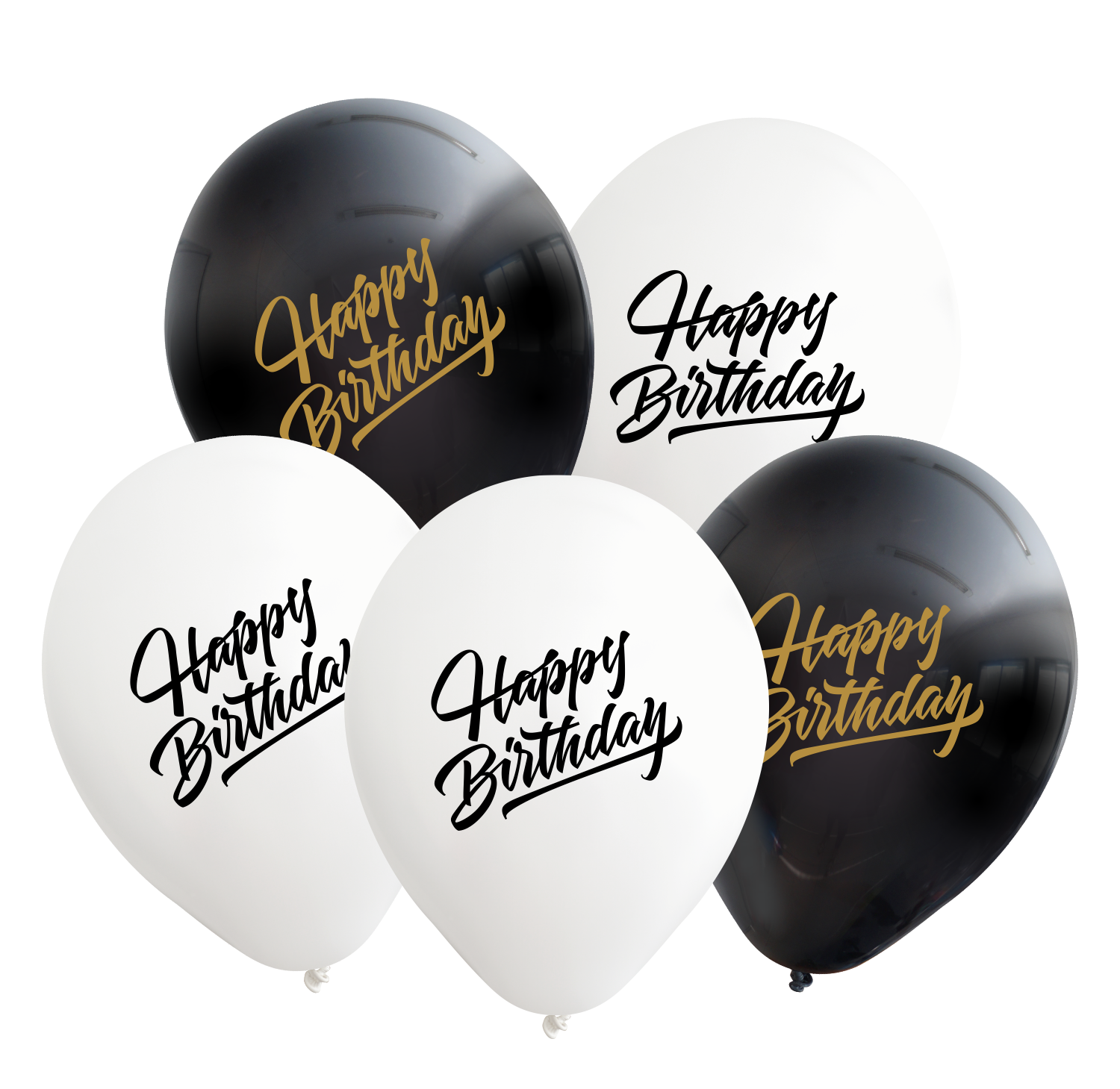 12inches Happy Birthday Black/White Balloons Gold Print Latex Balloons