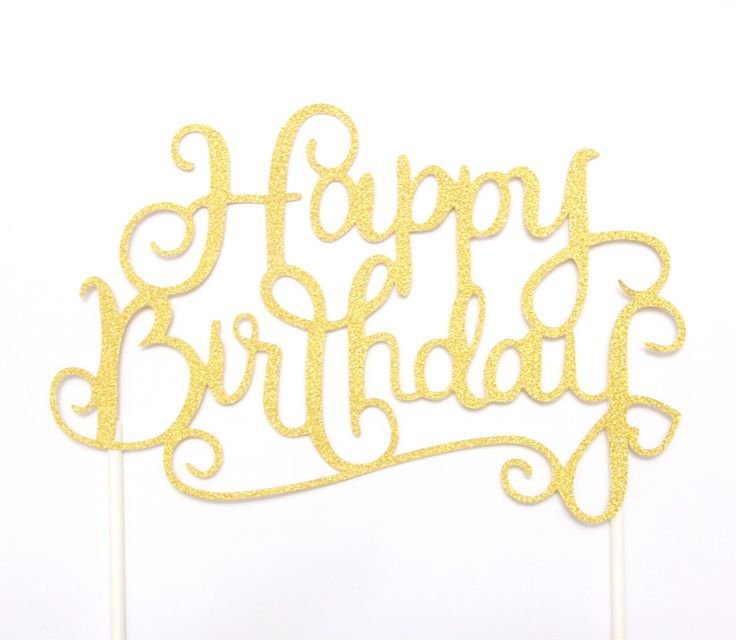 Gold Glitter Happy Birthday Cake Topper Design